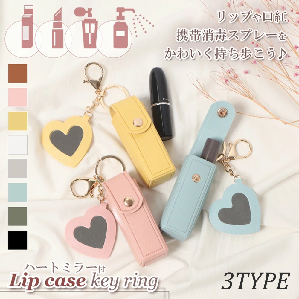 ハートミラー付き 鏡付き リップケース リップポーチ キーホルダー チャーム リップホルダー 口紅ケース リップクリーム ルージュ メイク 化粧品 持ち運び 携帯 コンパクト 小さめ かわいい おしゃれ 小物 収納 ミニ ポーチ 板ガムケース
