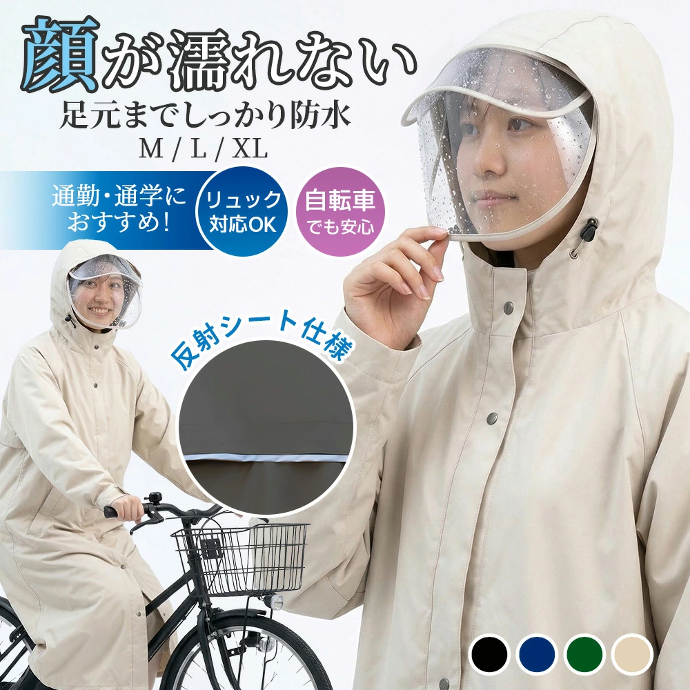 レインコート レディース レインコート 自転車 かっぱ 通学 かっぱ リュック カッパレインコート レインポンチョ 二重ツバ 超撥水 反射テープ リュック対応 ポケット付