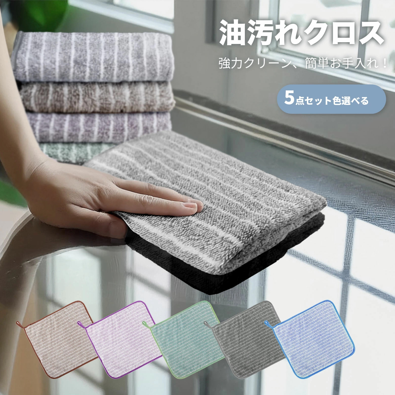 【5枚セット色選べる】ふきん キッチンクロス 油汚れクロス レンジクロス 布巾 油汚れ ふきん マイクロファイバー 全4色 コンロ レンジ 台拭き キッチン 食器 [239mmabu] - ¥2790 :