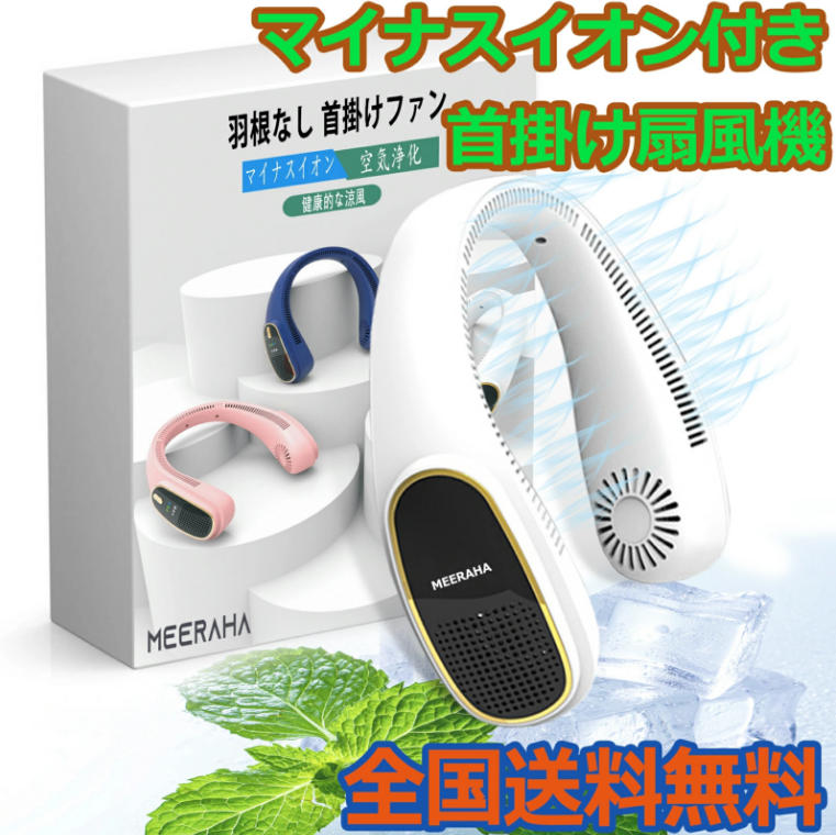 首かけ扇風機 羽なし【マイナスイオン付き】くびかけ扇風機 首掛け扇風機 ハンディファン 携帯扇風機 4000mAh USB充電式 ネッククーラー ハンズフリー 小型 軽量 静音 遠足 スポーツ観戦 アウトドア マスク蒸れ対策/熱中症 対策グッズ